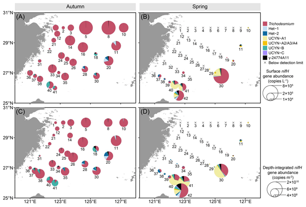 This manuscript presents a comprehensive dataset on nifH gene copy numbers, expression levels of major diazotroph groups, and surface nitrogen fixation rates in the East China Sea (ECS). By applying maximum entropy methods and generalized additive models, the study delineates the realized ecological niches of these diazotrophic groups. These findings enhance our understanding of diazotrophic community composition and nitrogen fixation in the ECS. Overall, this study represents a rigorous and valuable contribution. However, certain aspects of the presentation require improvement. I recommend considering this manuscript for publication pending minor revisions.