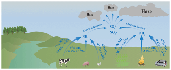 Nitrogen isotopic signatures of livestock-derived ammonia are shaped by multiple biogeochemical processes, including urea hydrolysis, microbial ammonification, and ammonia volatilization during manure storage. Urea hydrolysis, particularly under alkaline conditions typical of intensive livestock housing, promotes rapid NH3 release and is associated with strong kinetic isotope fractionation, preferentially enriching the emitted NH3 in 14N. Subsequent ammonification of organic nitrogen and prolonged manure storage further modify δ¹⁵N through cumulative volatilization losses, progressively enriching the residual NH₄⁺ pool in ¹⁵N.These processes help explain the observed interspecies differences in δ15N-NH3. Pig and poultry systems, characterized by rapid urea or uric acid hydrolysis and high volatilization rates, tend to emit isotopically lighter ammonia, whereas dairy cattle systems often involve longer manure residence times and more extensive nitrogen transformation, resulting in relatively enriched δ15N-NH3 values. Seasonal variability can be interpreted in a similar framework, as elevated temperatures enhance enzymatic activity and volatilization, thereby amplifying isotopic fractionation during summer, while lower temperatures suppress these processes and reduce isotopic offsets.Consequently, the δ15N-NH3 signatures reported here represent integrated end-member values that reflect the combined effects of nitrogen transformation and volatilization processes under realistic livestock management conditions, rather than fractionation associated with any single biochemical pathway.